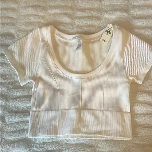 Stylish and comfortable white ribbed crop top. Perfect for casual outings or layering.