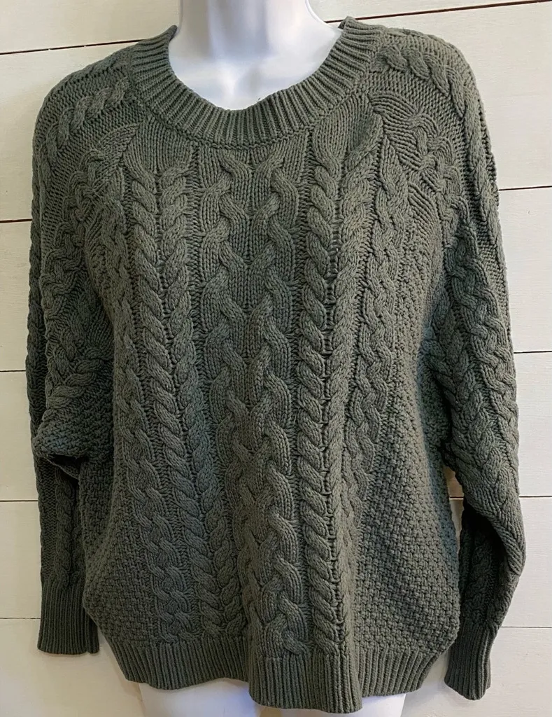Aerie women’s size medium sweater. Pullover features a 60/40 cotton/acrylic blend sage green fabric;... Show more