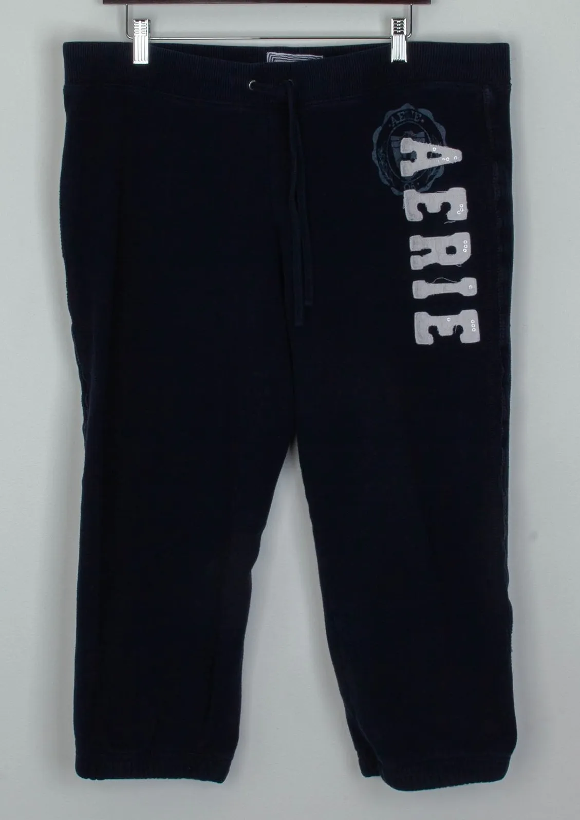 Black cropped sweatpants from Aerie with a graphic logo on the left leg. These comfortable joggers f... Show more