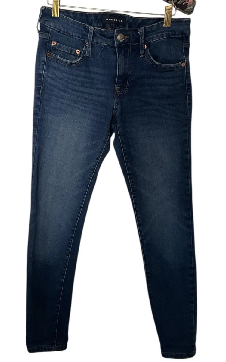 Classic Aero skinny jeans in a versatile dark wash denim. Made with comfortable stretch fabric that offers a flattering fit while allowing ease of movement. Perfect for everyday casual wear, work outfits, or weekend looks. A timeless wardrobe essential. PRODUCT DETAILS • Brand: Aero • Style: Skinny Jeans • Women’s Size: 4 (Regular) • Color: Dark Wash Blue • Fabric: Cotton blend with stretch • Rise: Mid Rise • Closure: Zip fly with button • Pockets: 5-pocket style • Condition: Gently pre-owned, no stains, rips, or holes noted Waist (flat): 13.5 – 14 in • Rise: 8.5 – 9.5 in • Inseam: 28 – 29 in • Hip (flat): 17 – 18 in • Leg opening: 5 – 5.5 in Aero jeans, skinny jeans women, size 4 jeans, dark wash denim, stretch jeans, casual women jeans, everyday denim, mid rise jeans, women skinny denim