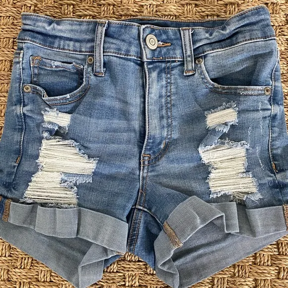 Aeropostale AERO Jean Shorts Sz 2 High Rise Midi Stretch Distressed Denim Blue - $15 - From Jillian