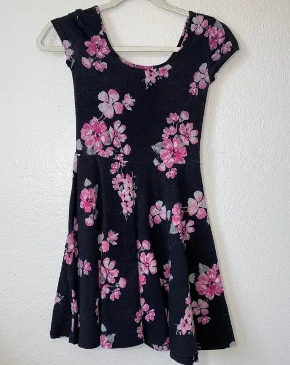 🌺condition: excellent 🌺details: black skater dress with pink floral pattern 🌺fit: true to size... Show more