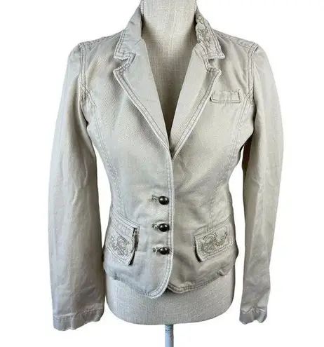Aeropostale Cotton Embroidered Blazer Jacket Womens Size S Tan Cream 3 Button Pockets Color - tan/c... Show more