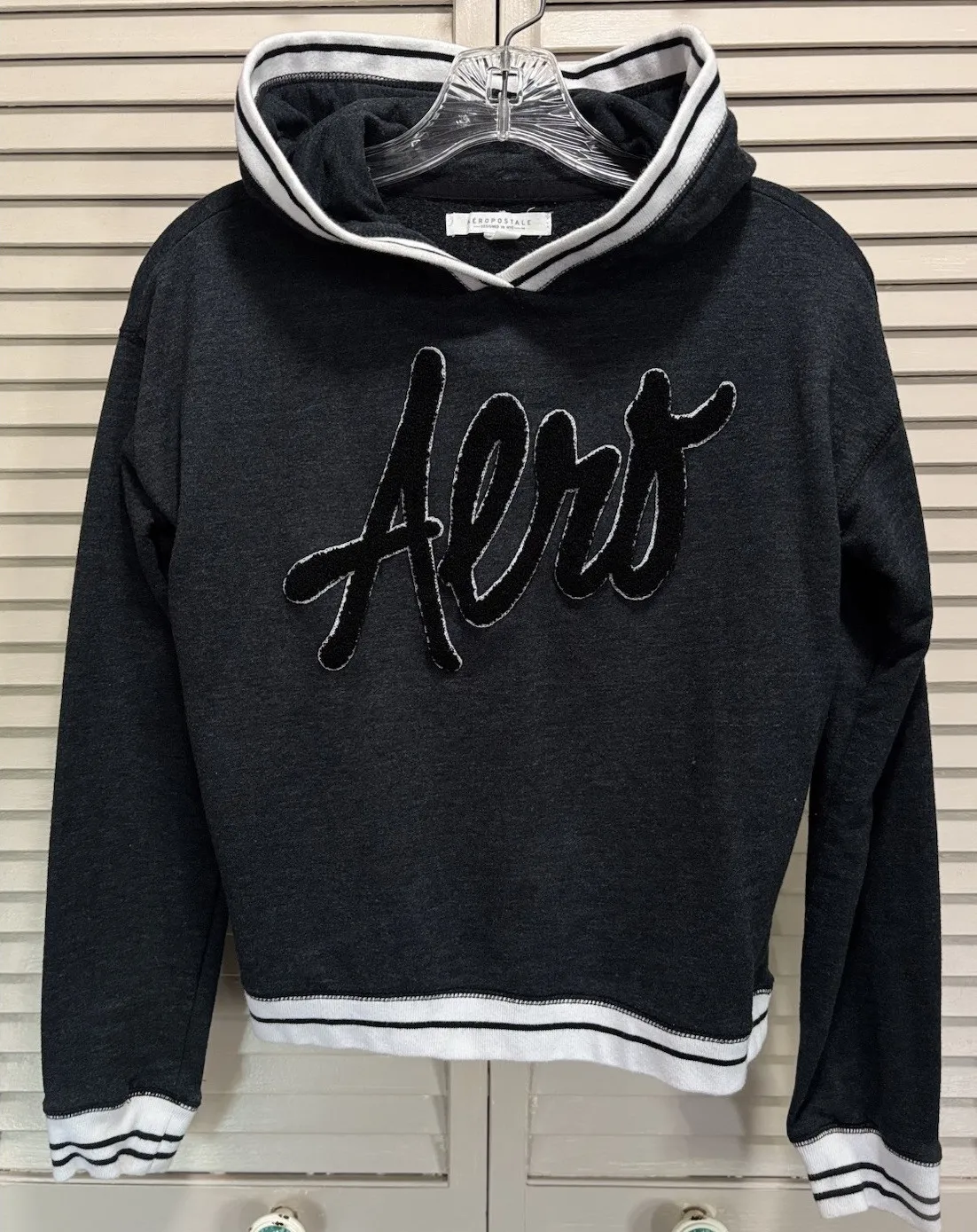 The Aeropostale Hoodie Sweatshirt in size XS features a stylish logo graphic in gray and black, maki... Show more
