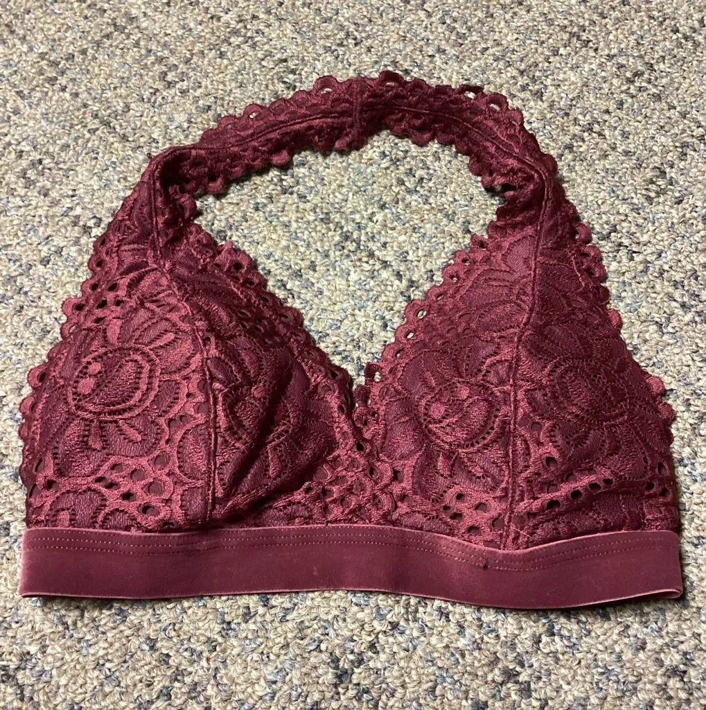 Aeropostale Live Love Dream Burgundy Lace Velvet Halter Bralette Size M Preowned, EUC Padded cups... Show more