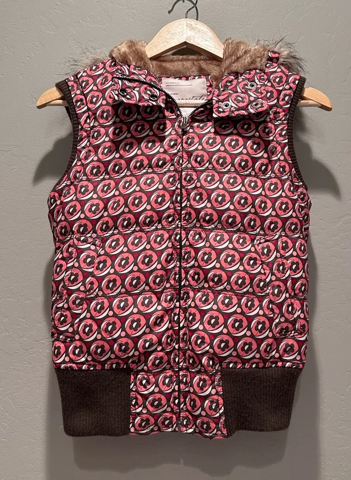 Aeropostale Pink Brown Lined Vest Faux Fur Hood Sz Small Filled with down and feathers, full front... Show more