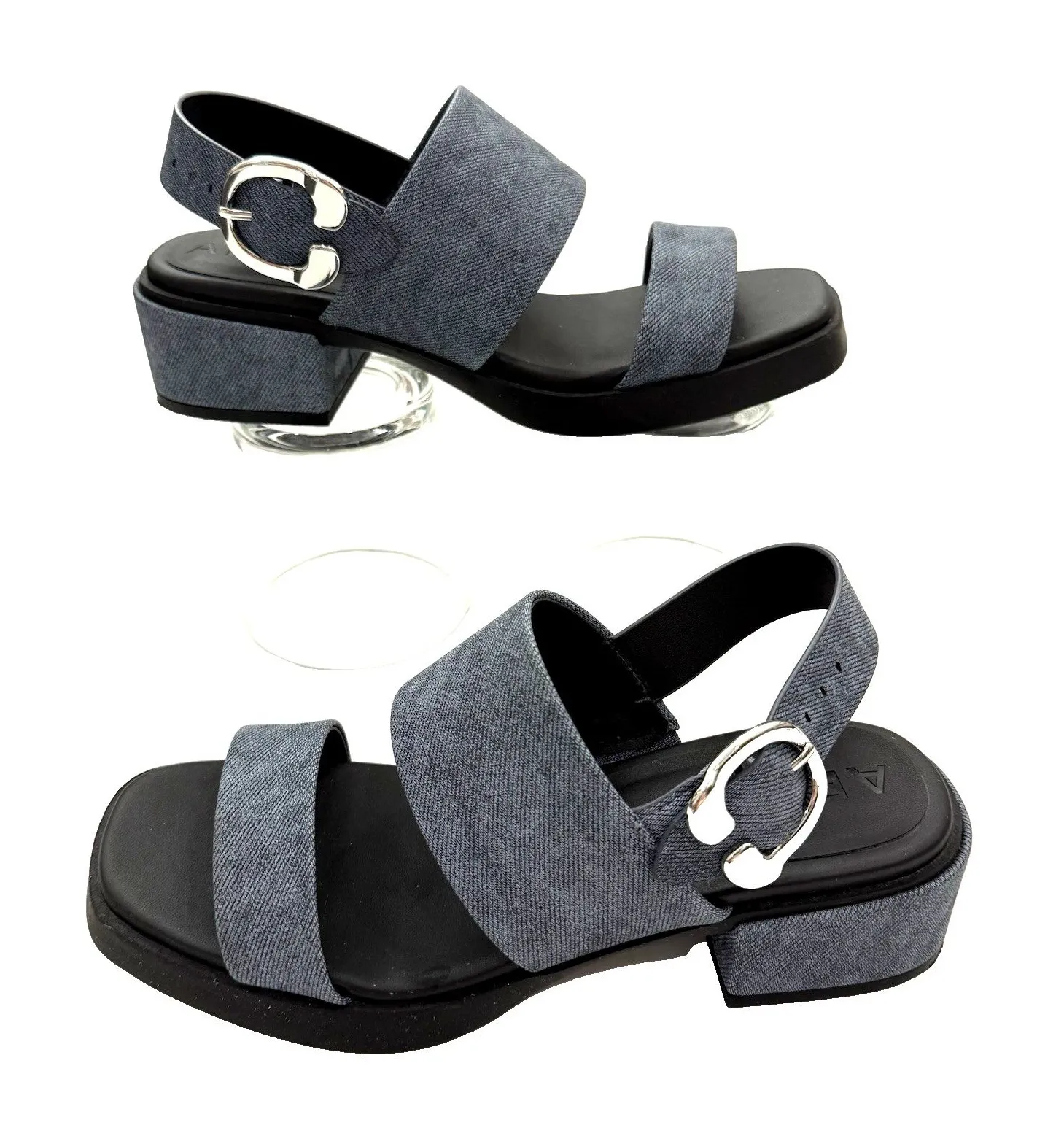Condition - pre-owned with very light signs of use and wear to interior, exterior and sole; Please review all pictures as they are part of the description. Brand: Aerosoles Women's Size: US 5.5. M / EU 36 / UK 3.5 Size Width: Standard Style: Dual Strap Heeled Sandal Shoe Style Name: Dove Color: Blue Jean (looks like denim but is an easy to wear and wipe clean faux leather) Material: Faux Leather Upper / Faux Leather Lining / Manmade Outsole Made In China Style Number: 080594 Features Adjustable Buckle Closure Padded Footbed Chunky Block Heel Measurements - are in inches, approximate & taken flat, unless otherwise noted 1-1/4" heel height - at tallest Accessories & props are not included unless otherwise specified. 1lb 12oz
