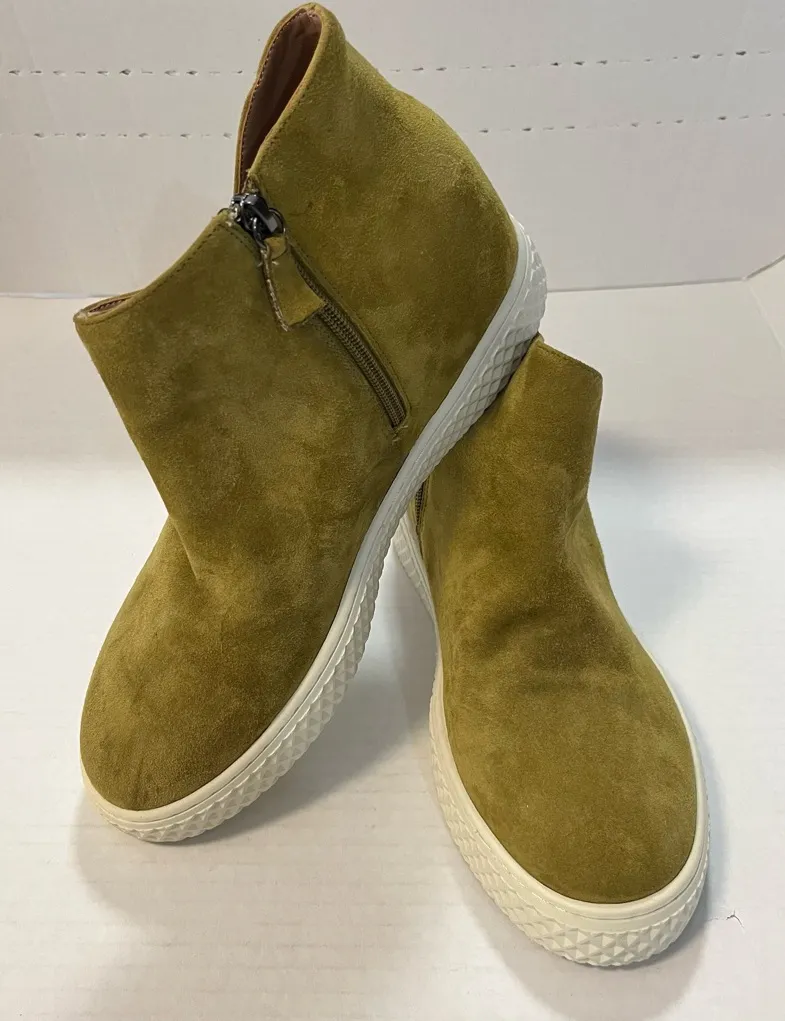 Features: - Olive Green - Sole material Suede, Rubber - Shaft height 5.5 Inches - Outer material Suede - Closure type Slip-On - Suede sole - Shaft measures approximately 5.5" from arch - Heel measures approximately 3 inches" NEW - but no tags or box Ask with questions Shoe Shelf