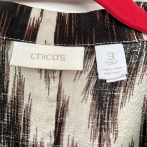 Chico’s Ikat Linen Button Up Top Jacket Size 3 100% Linen Button front closure Front pockets 3/4... Show more