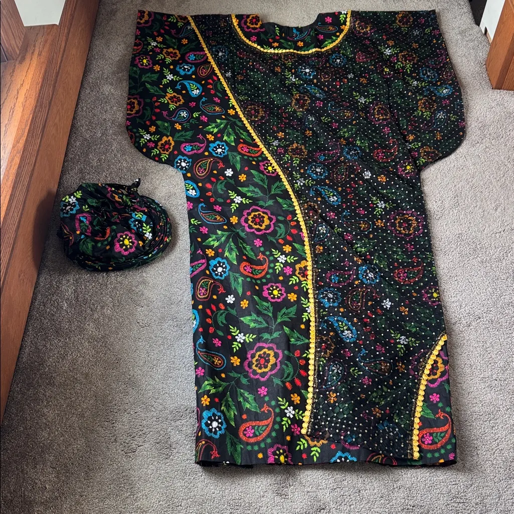African Ankara Lace Floral Two Piece Dress Set (Fits Up To SIZE 14) Black - $150 - From My