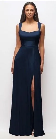 An elegant navy blue floor-length gown from AFTER SIX. This dress features a flattering square neckl... Show more