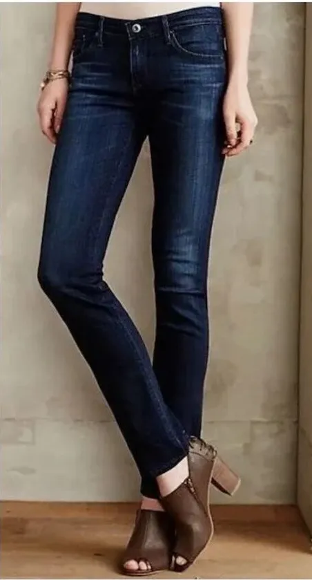 AG Premier skinny straight, distressed, dark wash jeans. Fitted, slimming, and comfortable. Pairs we... Show more