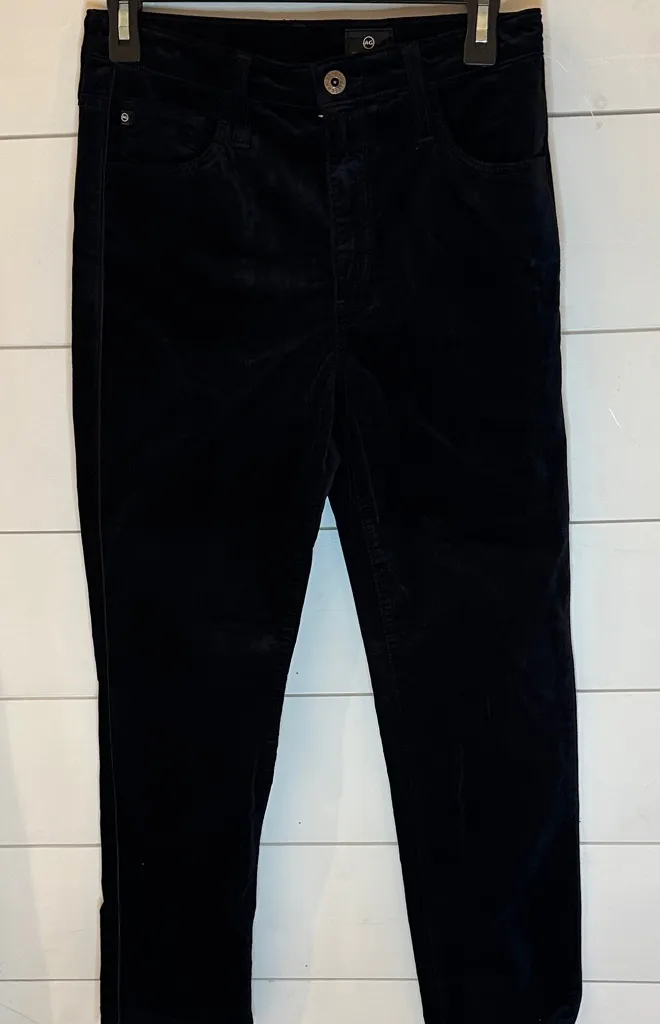 Elegant black velvet trousers by AG Adriano Goldschmied. Versatile and chic. Inseam 27 inches