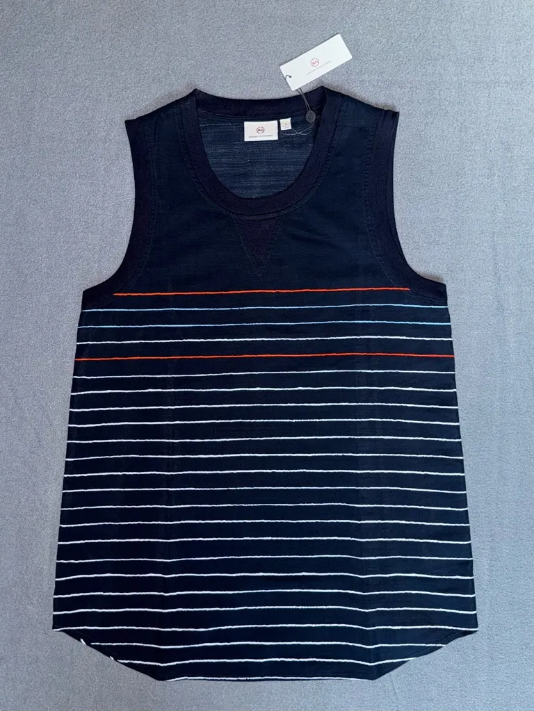 AG Adriano Goldschmied Navy sleeveless top featuring red blue and white stripes. Perfect for casual... Show more