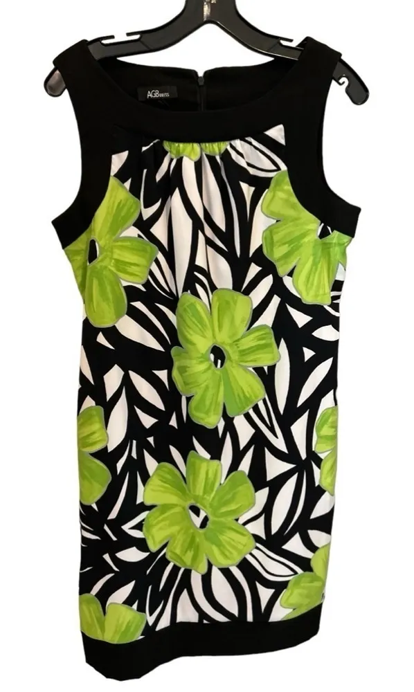AGB Dress neon‎ green flower in black and white print sleeveless dress size 12 - $10 - From jodi