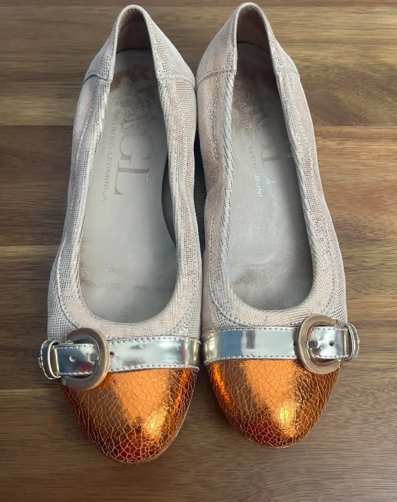 AGL Attilio Giusti Leombruni Womens 37 Cap Toe Icon Ballet Flats Shoes Italian Silver Size 6.5 - $40 - From Reagan