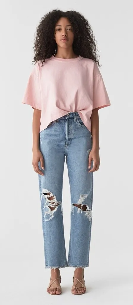 AGOLDE is a premium denim label focused on timeless washes, vintage-inspired fits, and practical designs. The LA-based label’s 90s jeans, ‘pinch waist’ high-rise jeans, cut-off denim shorts, tank tops, and basic tees are frequently spotted on celebs and supermodels.