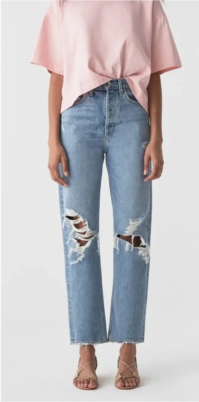 AGOLDE is a premium denim label focused on timeless washes, vintage-inspired fits, and practical designs. The LA-based label’s 90s jeans, ‘pinch waist’ high-rise jeans, cut-off denim shorts, tank tops, and basic tees are frequently spotted on celebs and supermodels.
