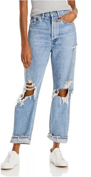 Agolde 90's Mid Rise Loose Fit Cotton Ripped Wide Leg Jeans in Fallout; excellent condition Button... Show more