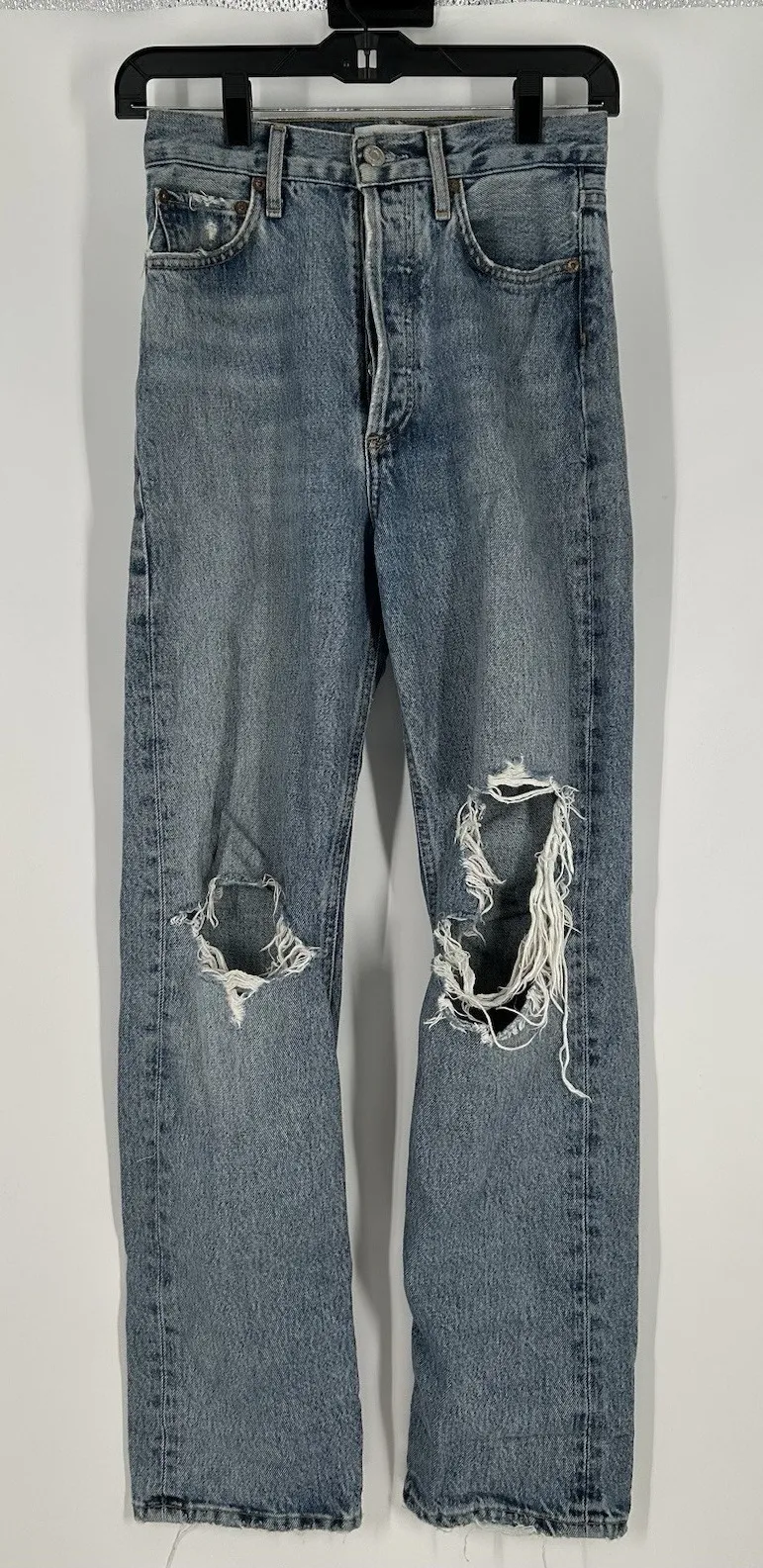 AGOLDE is a premium denim label focused on timeless washes, vintage-inspired fits, and practical designs. The LA-based label’s 90s jeans, ‘pinch waist’ high-rise jeans, cut-off denim shorts, tank tops, and basic tees are frequently spotted on celebs and supermodels.