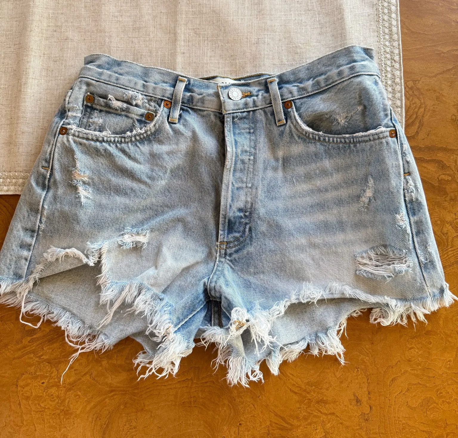 agolde parker high rise distressed denim shorts size 27, in great condition with no flaws to my know... Show more