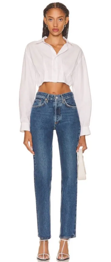 AGOLDE is a premium denim label focused on timeless washes, vintage-inspired fits, and practical designs. The LA-based label’s 90s jeans, ‘pinch waist’ high-rise jeans, cut-off denim shorts, tank tops, and basic tees are frequently spotted on celebs and supermodels.
