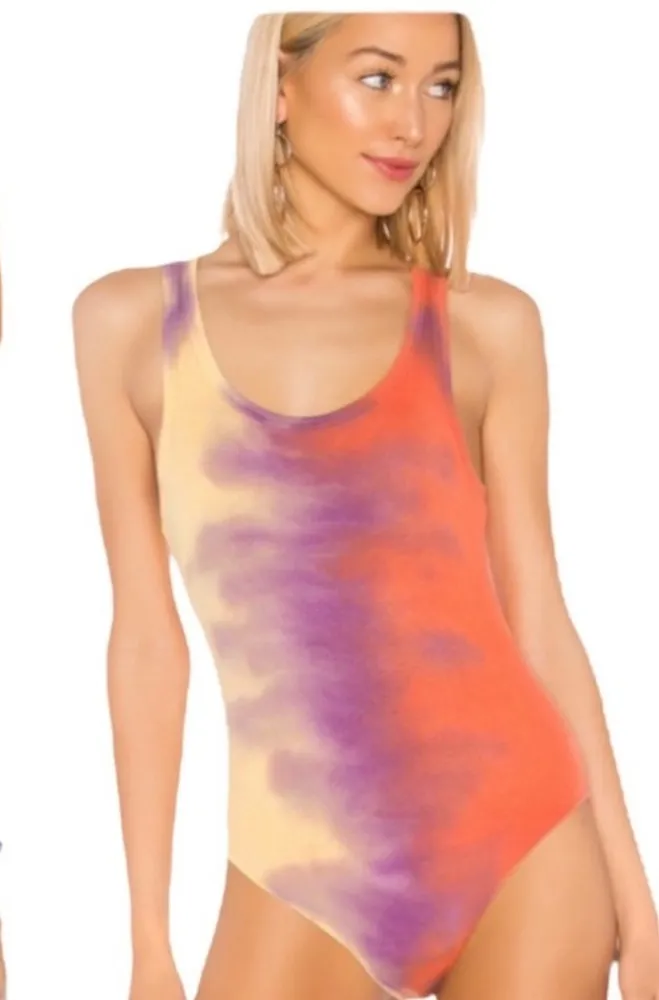 AGOLDE Revolve yellow purple and pale orange tie dye ribbed bodysuit. Scoop neck tank. Size Small... Show more