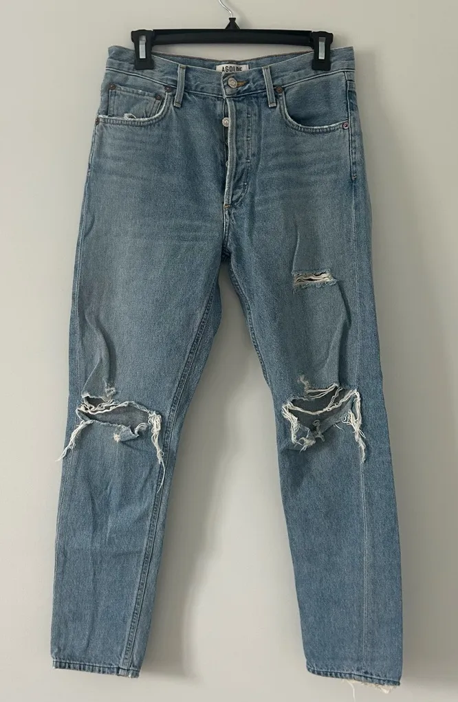 AGOLDE Riley High Rise Distressed Straight Leg Jeans Size: 26 Fabric 80% Organic Cotton 20% Recycl... Show more
