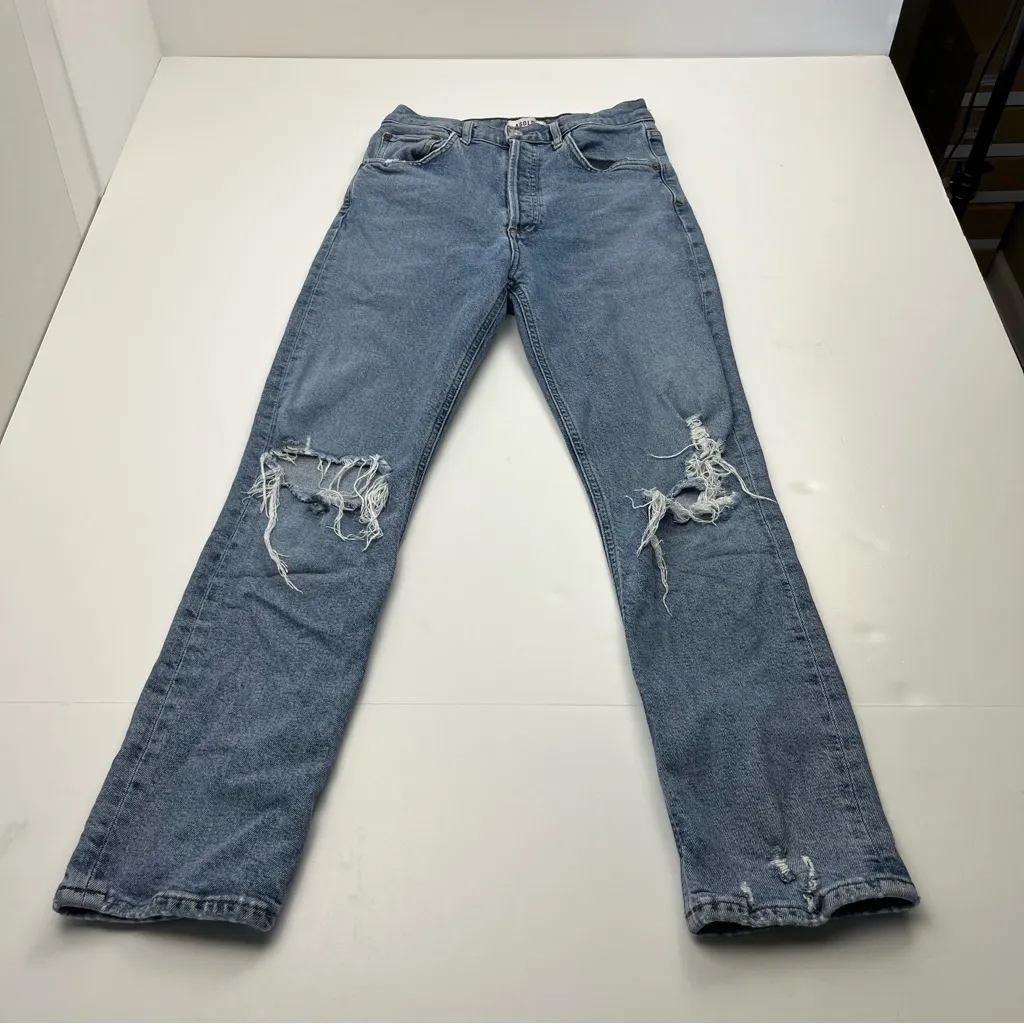 Agolde Riley Women’s Size 25 Blue High Rise Straight Crop Denim Jean Distressed Preowned in good co... Show more