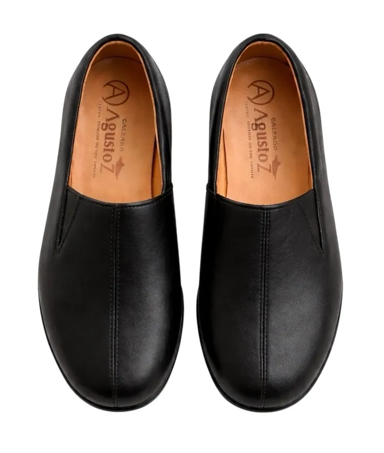 Agusto Calzado leather comfort slip-on shoes crafted in smooth black leather with a rounded toe and... Show more