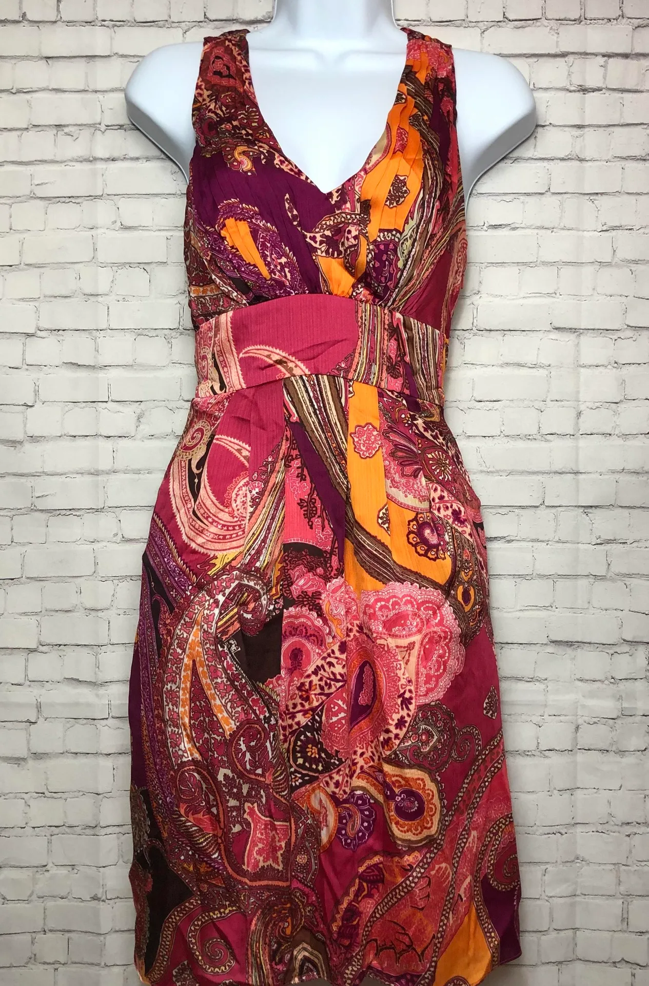 Mattox Pink & Orange Halter Chiffon Party Dress Size 2 Criss cross back Zip on left side Pockets on each side Tie waist Pink lining Length:36” Bust: 15” Waist: 13.5” Measurements are approximate and taken flat lay