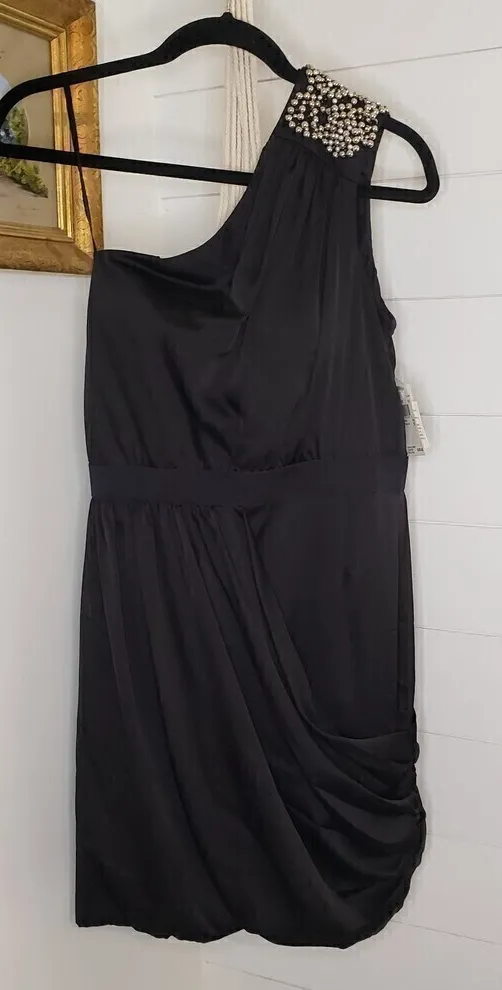 Aidan Mattox NWT Beaded One Shoulder Black Ruched Mini Dress Size 10 - $36 New With Tags - From Samantha