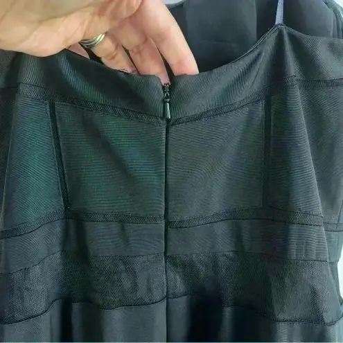 Beautiful dress from Aidan Mattox. Sheer illusion lined dress with mesh. Perfect for bridesmaid, party, wedding. Spaghetti straps and can be used sleeveless. Size 8 Length 55" Pit to pit 16" Waist 15" Dress in great preowned condition.