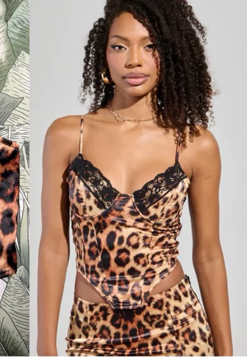 Akira Brown Leopard Cheetah Plunge Satin Lace Fierce Corset Cami Top Size XL Brand: Akira Size: XL... Show more