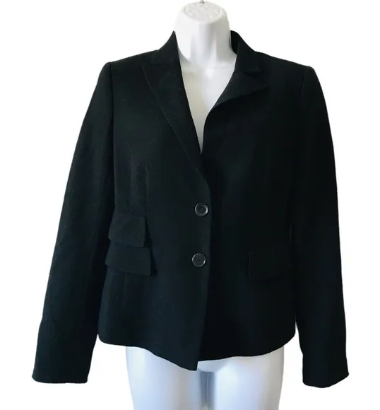 Akris Punto black wool women's blazer size 6 unlined %100 wool fabric from Italy made in Romania office, carrier, formal Measurements Length 23” Armpit to armpit 18” excellent condition