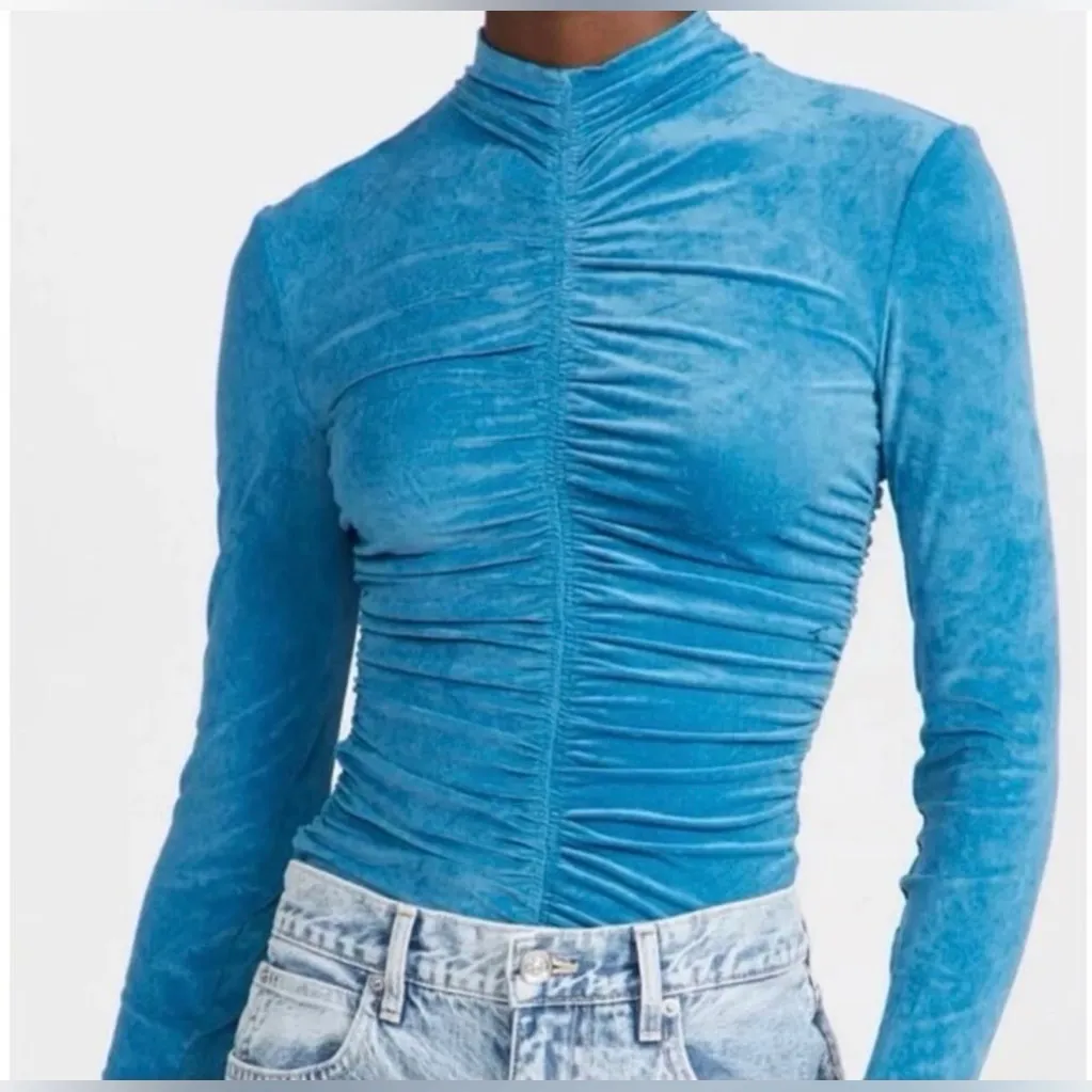 A.L.C. Ansel top long sleeve velvet crushed blouse peacock mock neck ruched Blue Size XS - $45 - From Filo