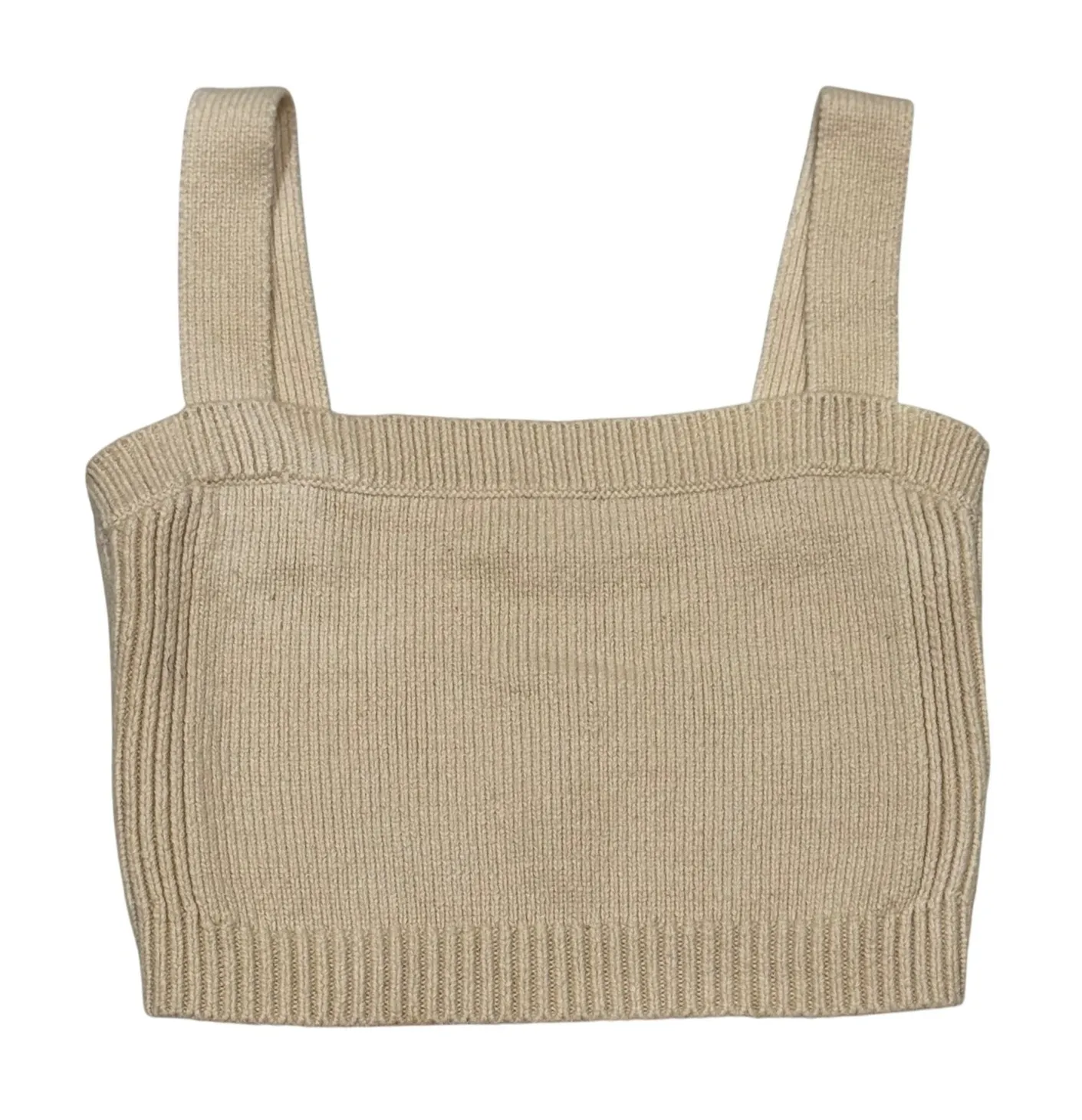 A cream ribbed knit square neck tank top sweater. This versatile piece features a flattering square neckline and a comfortable, fitted silhouette. Perfect for layering or wearing on its own, it transitions effortlessly from casual outings to more polished looks. Ideal for brunch, a day at the office, or a night out with friends. Minor signs of wear. Measurements: • Length from shoulder: 15" • Pit to pit: 13.5" Type: Tank Department: Women Style: Cropped Material: Cotton Blend, Polyamide, Cashmere, Elastane Neckline: Square Neck Sleeve Length: Sleeveless Sleeve Type: Strappy Sleeve Pattern: Solid Accents: Strap Features: Stretch, Straps Fit: Slim Fabric Type: Knit Occasion: Casual Closure: Pullover Keywords: ALC, knit top, ribbed, square neck, cropped, sleeveless, minimalist, chic, versatile, summer, fall, loungewear, smart casual