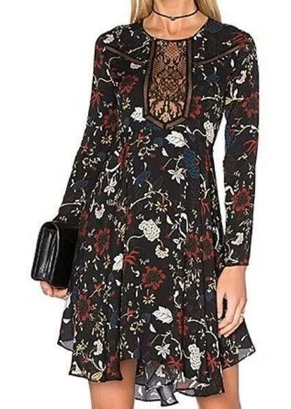 This stunning A.L.C. Cynthia dress is perfect for any occasion. The floral pattern and lace fabric make it a beautiful and elegant choice for a wedding, party, or cocktail event. The dress features a round neckline, long sleeves, and a hook & eye closure. The fit & flare style is flattering and feminine, while the lined accents ensure a comfortable and seamless fit. The short dress length and black color make it a versatile choice for both casual and formal events. This dress is a must-have for any fashion-forward woman's wardrobe.