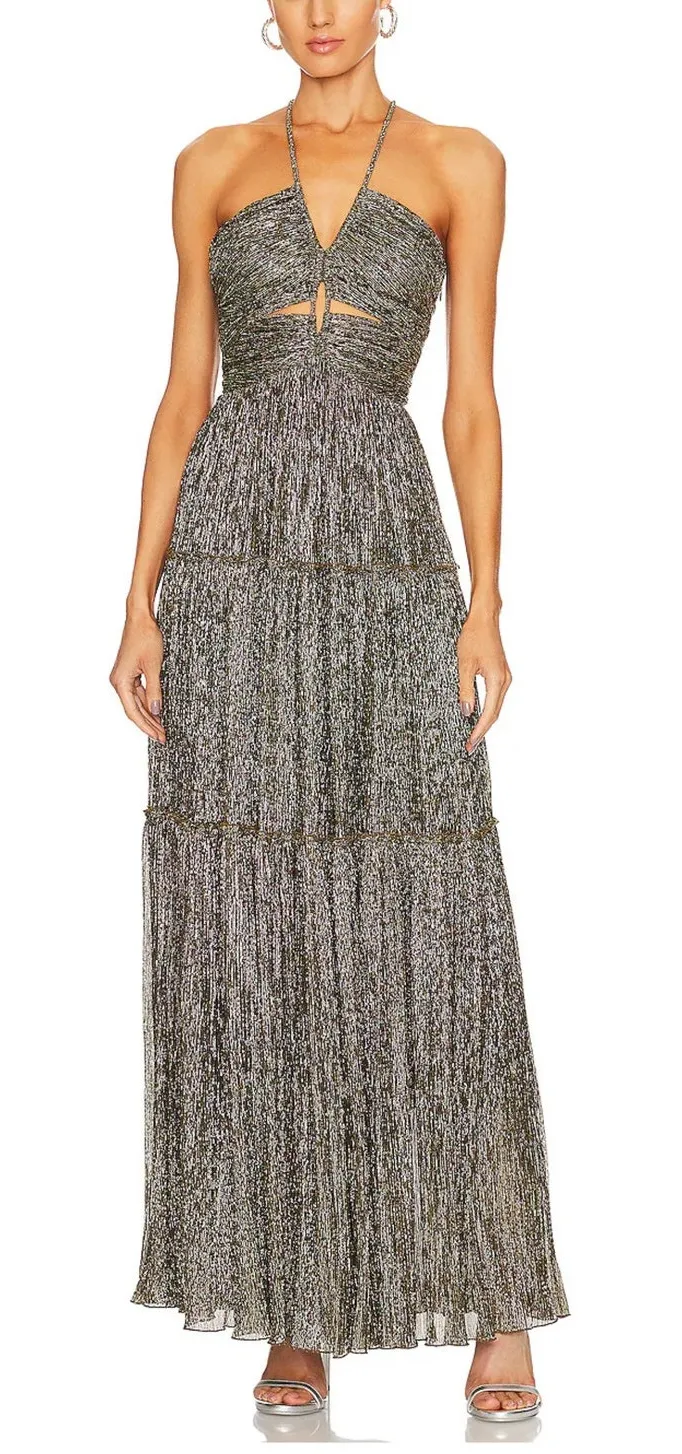 A.L.C. Kai Dress Gold Halter Maxi Size 4 XS Metallic Disco Party NYE Holiday Size-4 / Extra Small... Show more