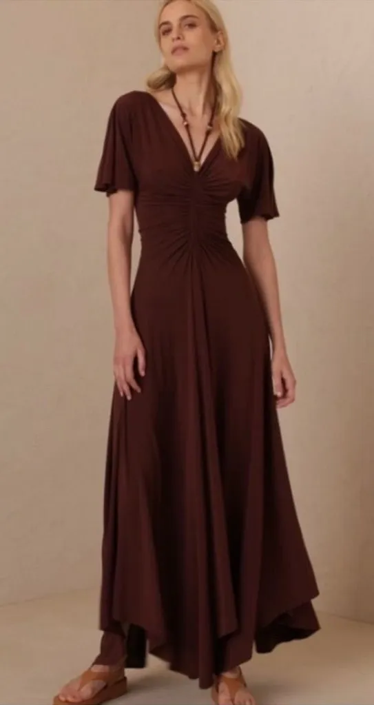 Size S- new with tags This boho-inspired maxi dress features a curve-hugging ruched bodice topped w... Show more
