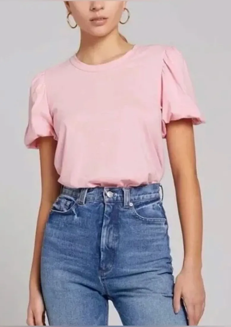 A.L.C. Poole Puff Sleeve Top Tee Shirt Cotton in wonderful condition. Small surface mark from being handled in store. Should wash out. See last pic for details. Crew neck Short puff sleeve Pull over style 100% cotton Made in the USA Excellent condition, no flaws Ships same or next business day puffsleeves, elevated_basics, high_end, classic, timeless