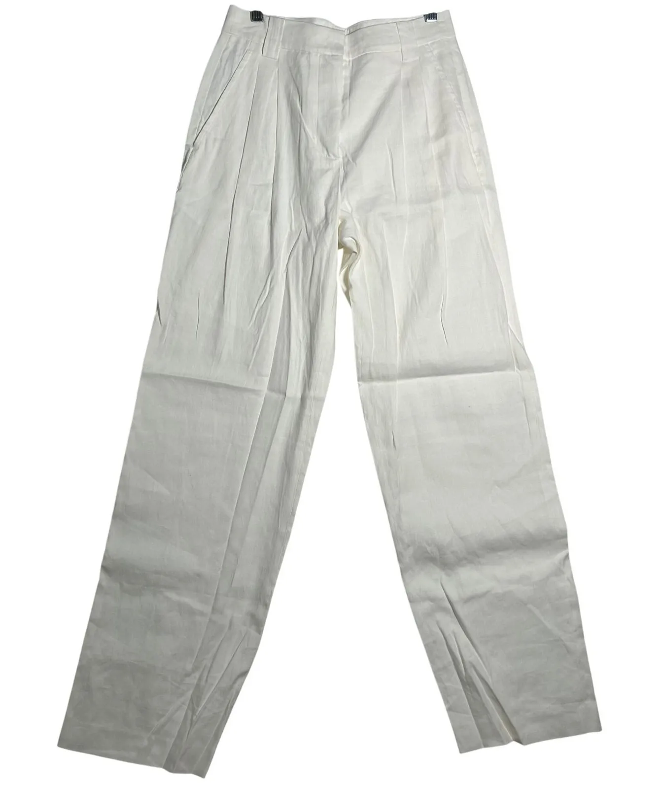A.L.C. white pleated wide leg trousers crafted from a luxurious linen blend. These pants feature a classic zipper fly with button closure and a flattering high-rise waist. The tailored design includes deep pleats at the front, creating a sophisticated silhouette. Measurements: • Waist: 13 in (26 in total) • Inseam: 31 in • Rise: 11 in Style: Dress Pants Department: Women Material: Linen, Cotton, Elastane Leg Style: Wide-Leg Type: Pants Fabric Type: Linen Features: Lightweight, Breathable, Wrinkle Resistant, Pleated Closure: Zip, Button Pattern: Solid Accents: Pleated, Zipper, Button Occasion: Casual, Workwear, Business Inseam: 31 in Keywords: ALC, linen pants, wide leg, pleated trousers, high rise, tailored pants, summer pants, designer pants, minimalist, classic, elegant, workwear, sophisticated A.L.C, Andrea Lieberman, linen pants, tailored trousers, minimalist, workwear, capsule wardrobe, high-end Fast shipper- most items ship within 1 day!