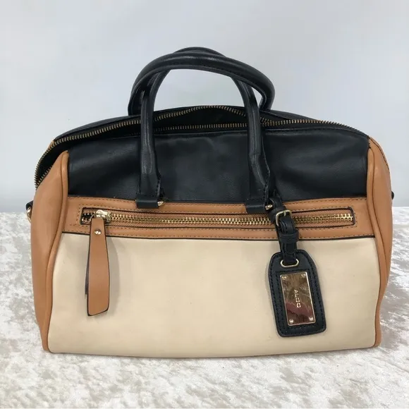 Aldo satchel bag in black tan and cream. Overall in fair condition with normal wear and some flaws b... Show more