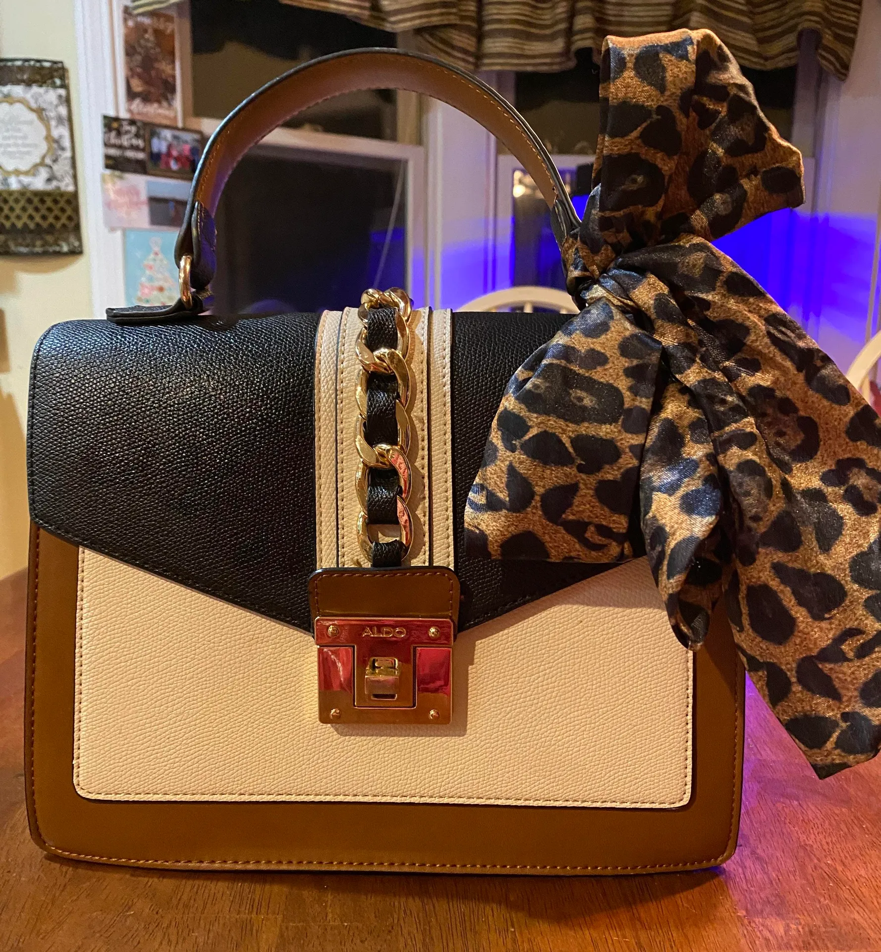 1 year old satchel with cheetah bow In great condition! Minor blemish on backside by chain decoratio... Show more