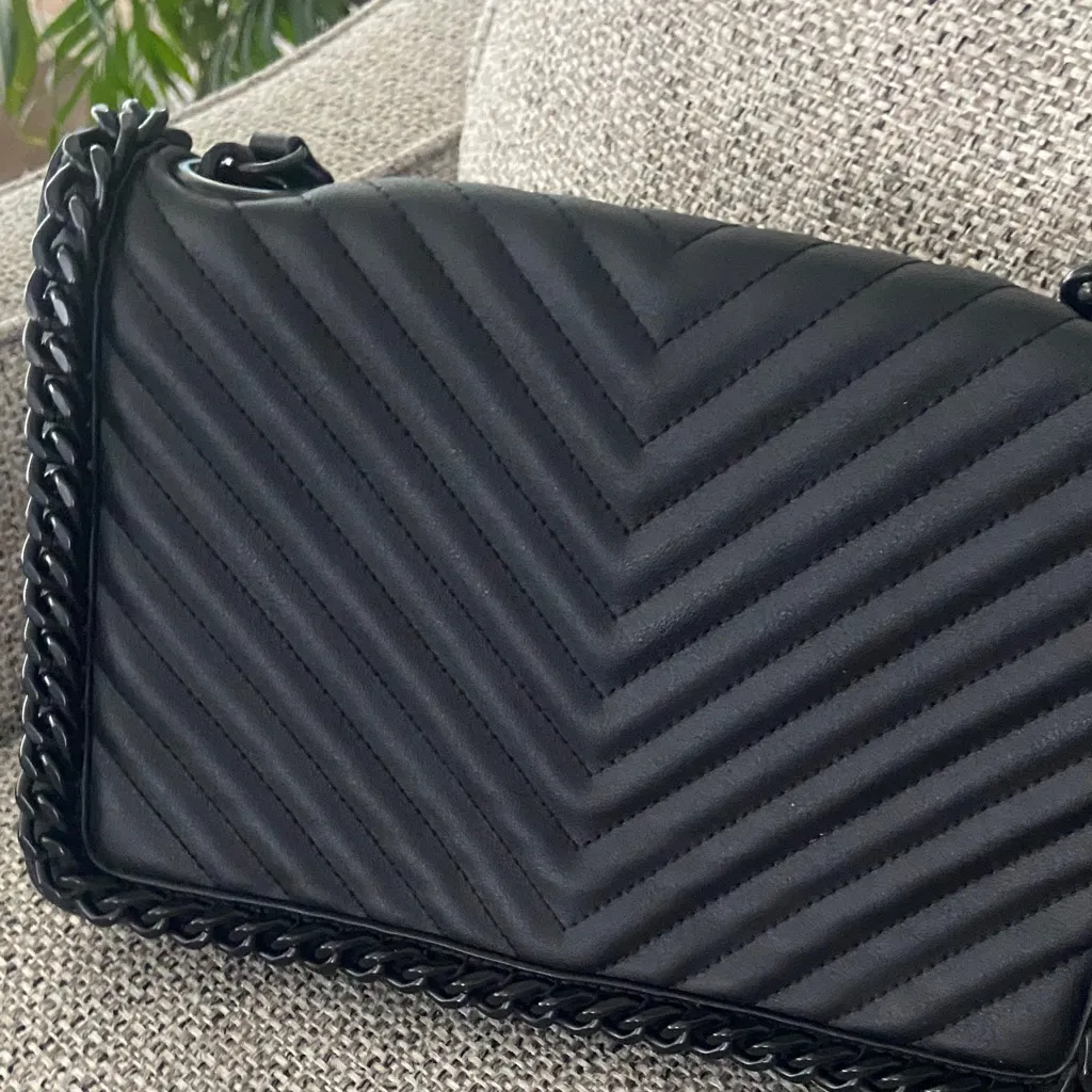with chain strap This stylish black quilted bag features a chic chain detail, perfect for any occasi... Show more