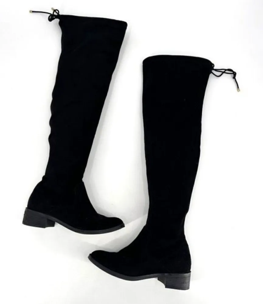 Aldo Women's Suede Flat Lace Pull On Round Toe Over The Knee Boots Black Size 8 Brand: Aldo Depart... Show more