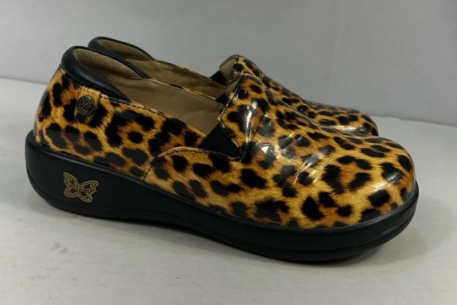 Stylish and comfortable Alegria Keli Leopard Print Patent Slip-On Shoes in Women’s Size 38 (fits 8–8... Show more