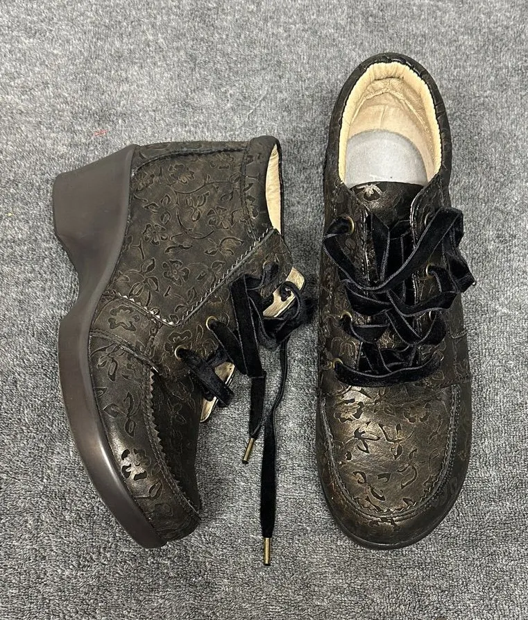 Stylish black lace-up boots by Alegria. Features intricate patterns and comfortable design great for... Show more