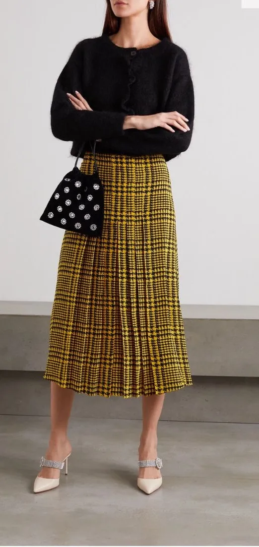 Alessandra Rich houndstooth pleated silk midi skirt, size IT 38 (US size 2). Excellent condition, wi... Show more