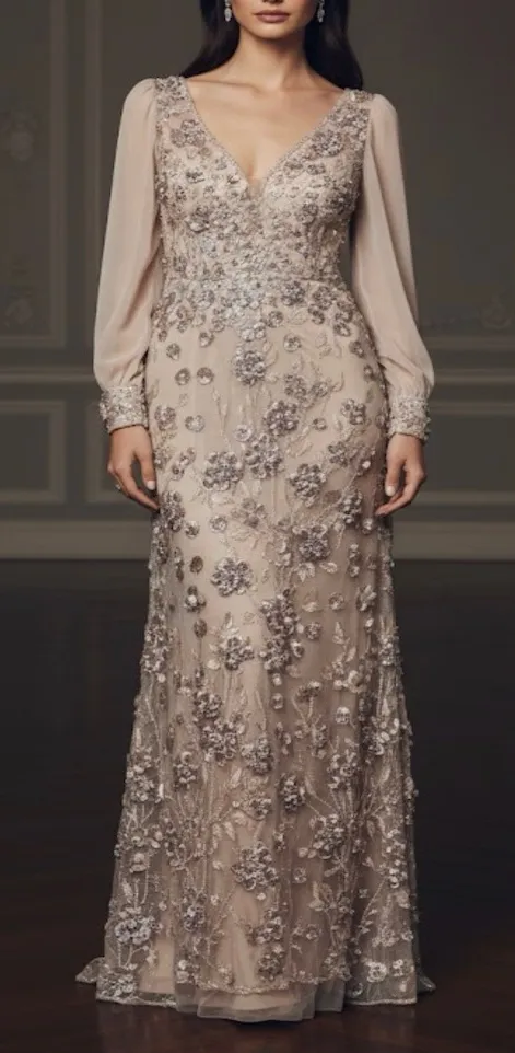 Ribbon rosettes & embroidery Mesh illusion neckline Long sheer chiffon sleeves, floral cuffs Flare skirt Concealed center back zipper Fully lined (except neck/sleeves) Polyester, nylon Hand Wash Good pre owned condition, no rips, holes or stains Worn once Clean and ready to wear Approximate measurements laying flat: 16" armpit to armpit 18" sleeves 54-57" length Colors may slightly vary depending on lighting & screen settings Clean, smoke free, pet free environment Same day or next day shipping Offers welcome and will be considered